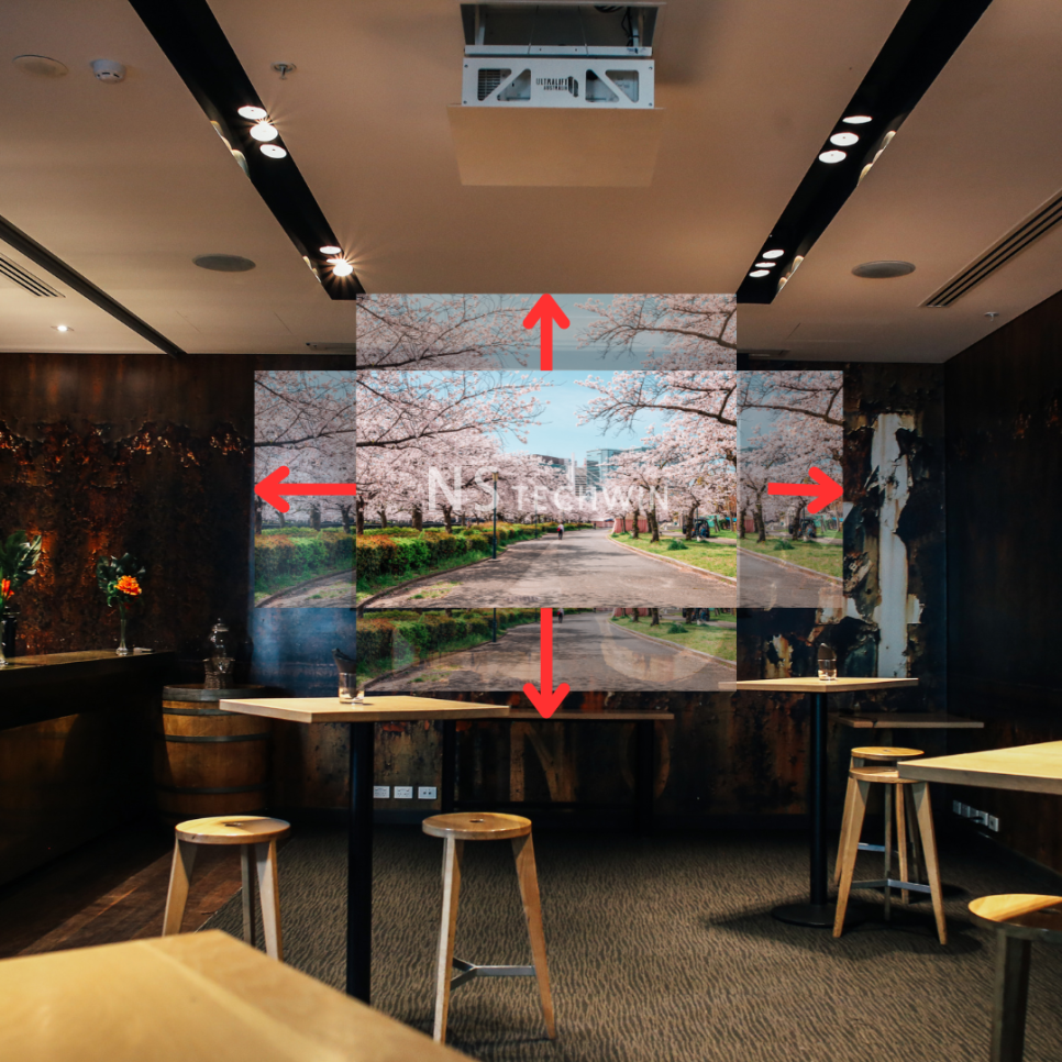 이를 통해 프로젝터와 스크린 간의 거리, 투영 각도 등에 관계없이 영상을 정확하게 맞출 수 있습니다.