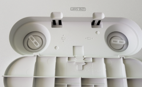 해당 빔 프로젝터에 탑재되어 있는 렌즈 쉬프트 뚜껑을 열고