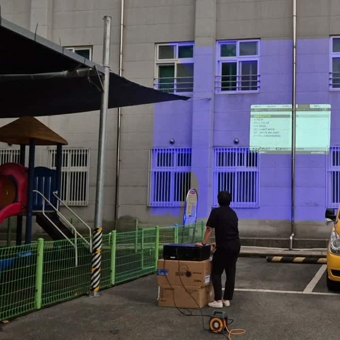 NEC PX2201UL 고안시 프로젝터 외벽투사 세팅중입니다.