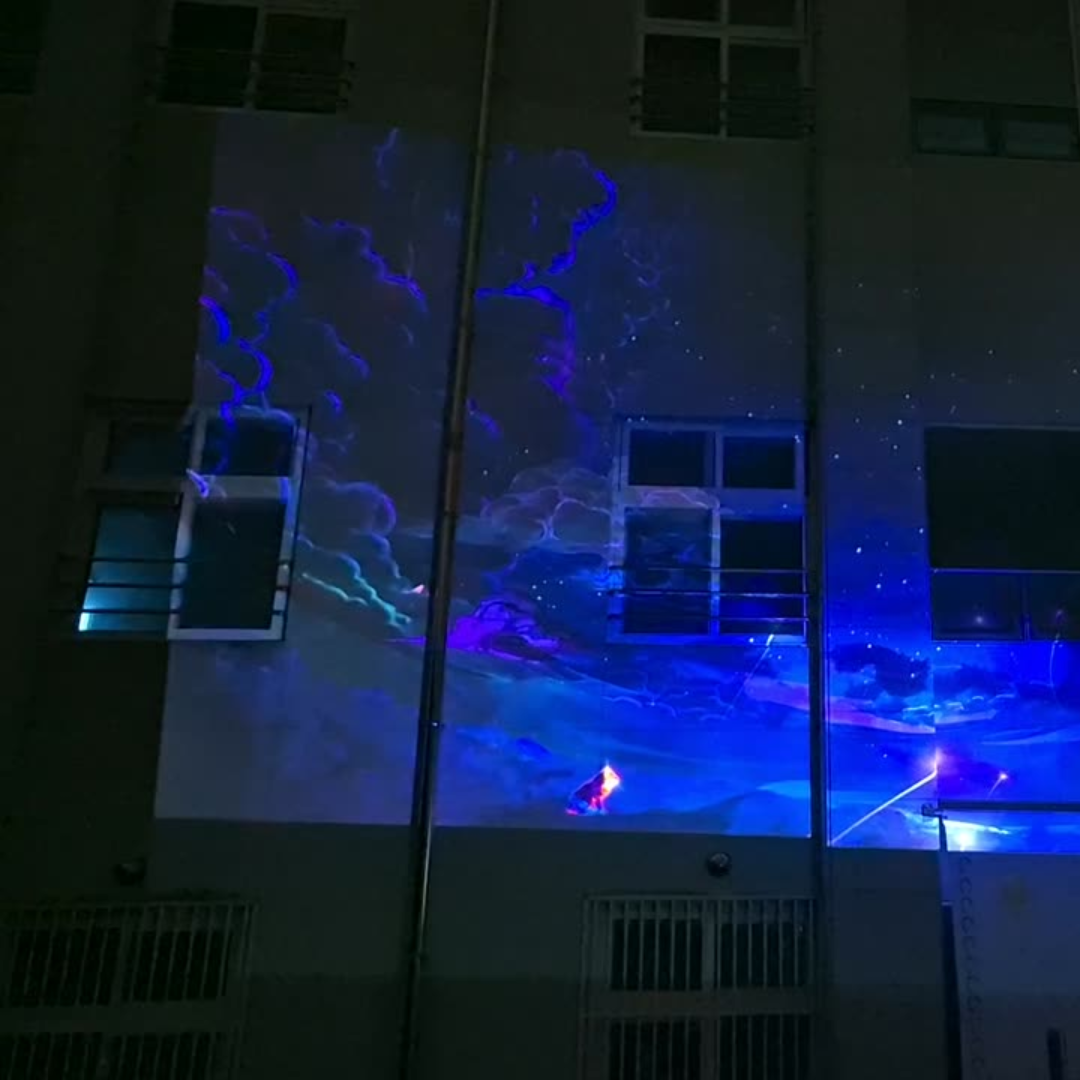 높이 4M의 오브젝트에 설치하여 바닥투사 예정인 제품으로 4K의 해상도로 디테일한 화면을 구현해줍니다.